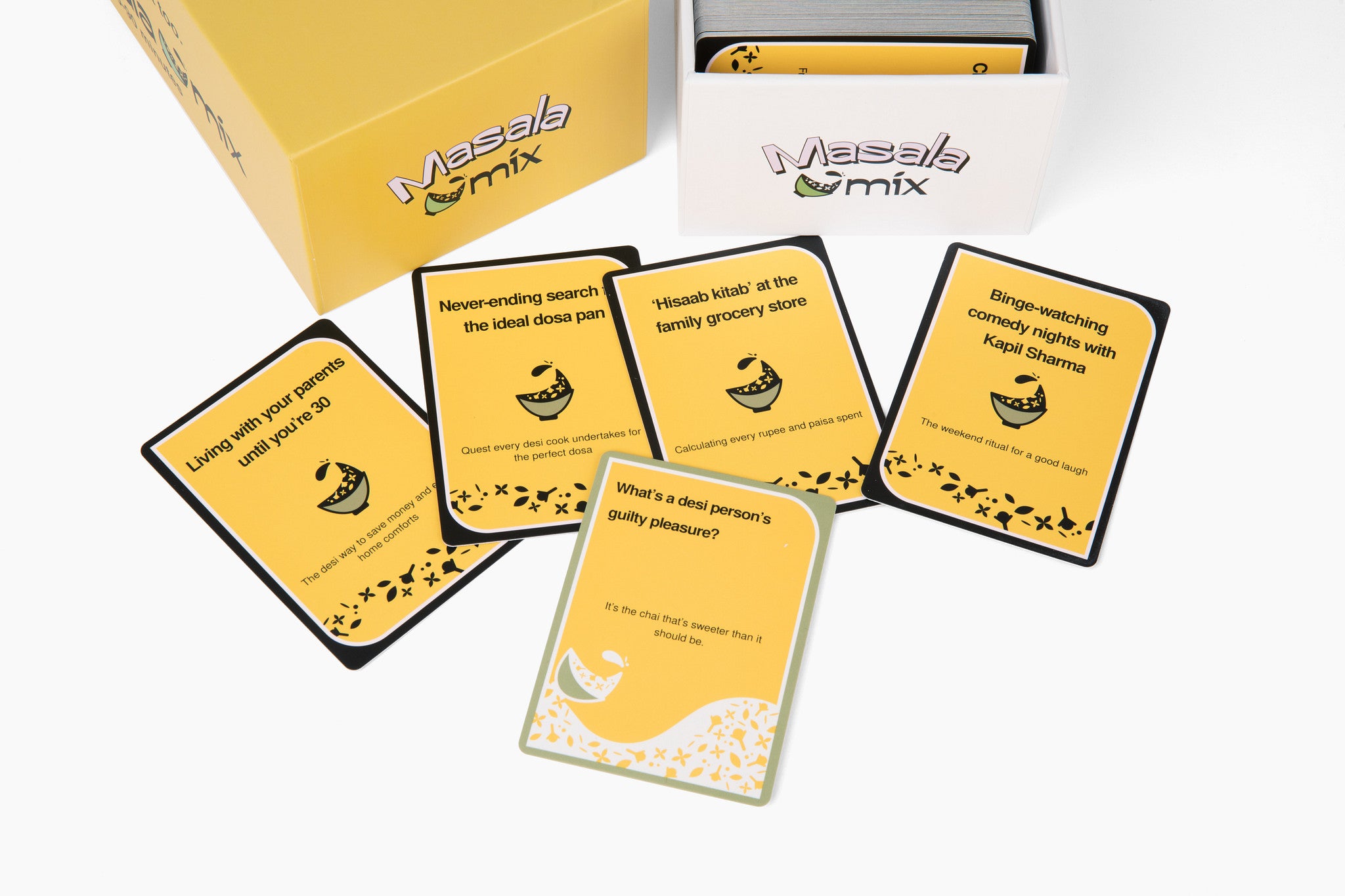With 75 question cards and 300 answer cards, Masala Mix captures: